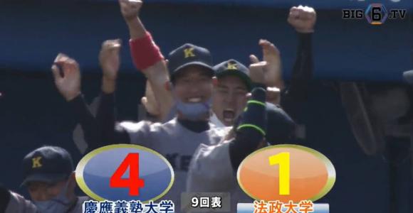 法大が先制するも中盤に勝ち越した慶大がそのまま逃げ切り勝利を掴んだ。