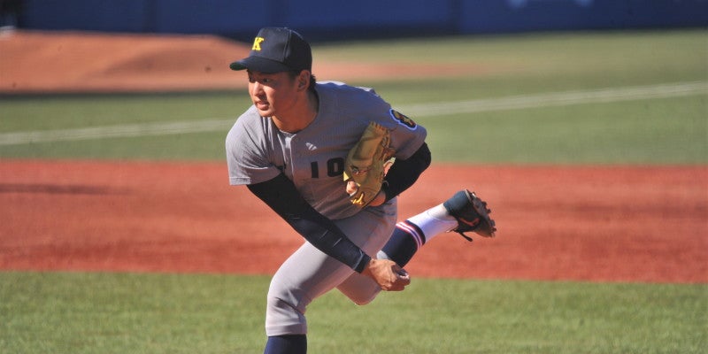 慶大の先発・森田は、多彩な変化球が冴え渡り初回を三者凡退で抑える上々の立ち上がり。しかし、2回に2死から安打を許すと、甘く入った変化球を打たれ、右中間への適時二塁打で先制される。