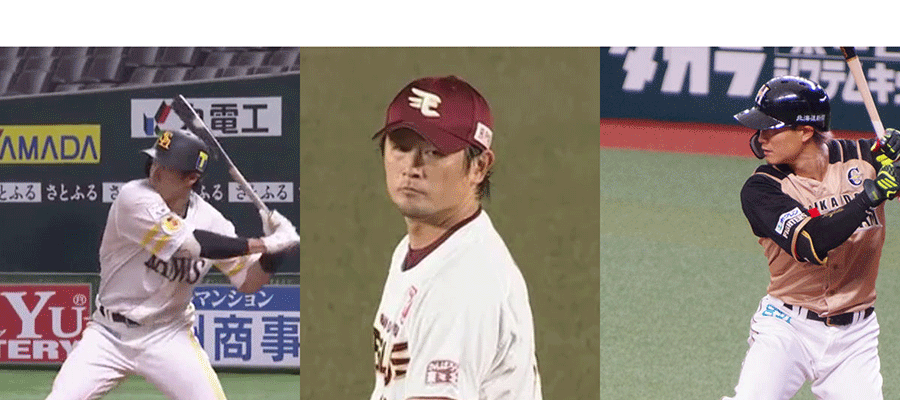 ソフトバンク・柳田悠岐、楽天・涌井秀章、日本ハム・西川遥輝(左から)【画像:(C)PLM】