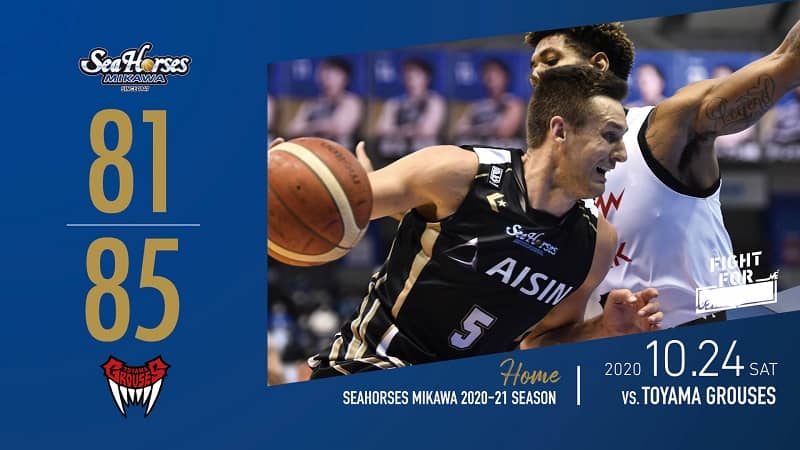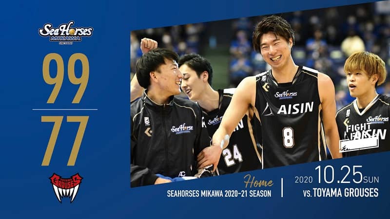ファンとPR隊長の熱い応援を受け、ホーム・ウィングアリーナ刈谷で富山グラウジーズと対戦したシーホース三河。10月24日(土)は好スタートを切るも惜敗。25日(日)は、6人が二桁得点、コリンズワースが15得点10リバウンド8アシストと2日連続でダブルダブルを記録し、22点差で勝利した。
