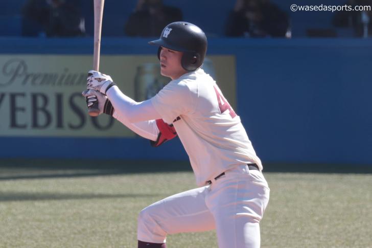 先頭の金子銀佑(教4=東京・早実)が中前打を放つなど、得点の期待できる展開が初回から見られる。すると2回、1死後から野村が外角直球を逆らわずに打ち返し、右中間を破る二塁打に。続く熊田も外角への直球を流し打ち、左中間二塁打となってあっという間に先制した。後続の打者が凡退して得点は1点にとどまったが、さらなる追加点も期待できる展開であった。しかしその直後の立大の攻撃で流れは一変する。2死走者なしで迎えたのは、6番・山田。この打席まで打率1割台に沈むなど不振に苦しめられていたが、六大学随一の長打力を持ち合わせている打者は甘くなかった。真ん中に入ったスライダーを引っ張ると、打球は高々と舞い上がりレフトスタンドに。その後徳山は持ち直して失点を1点にとどめたが、早大側に傾きかけていた流れを引き戻されてしまった。