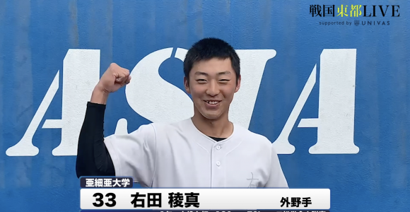 ■亜細亜大学・右田稜真 二松学舎大附出身 180cm79kg 右投右打