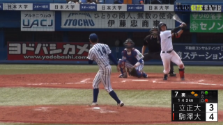 ◆ 東都大学野球 秋季1部リーグ戦 立正大 vs 駒澤大(1回戦)立正大 012 000 000 =3 駒澤大 10…