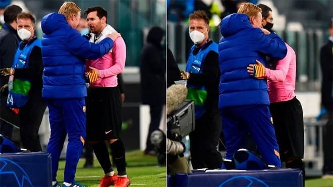 ロナルド・クーマン監督とレオ・メッシは、ユヴェントス戦終了後、2-0の勝利を祝って挨拶を交わすと同時に、お互いに大きなハグを交わした。彼らは勝利への喜びと満足感、そして特にチームのプレーの仕方に満足している様子を見せた。