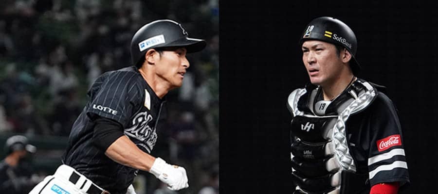 ロッテ・荻野貴司(左)とソフトバンク・甲斐拓也【写真:荒川祐史】