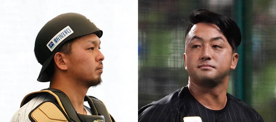 ロッテ・田村龍弘(左)と澤村拓一【写真:荒川祐史】