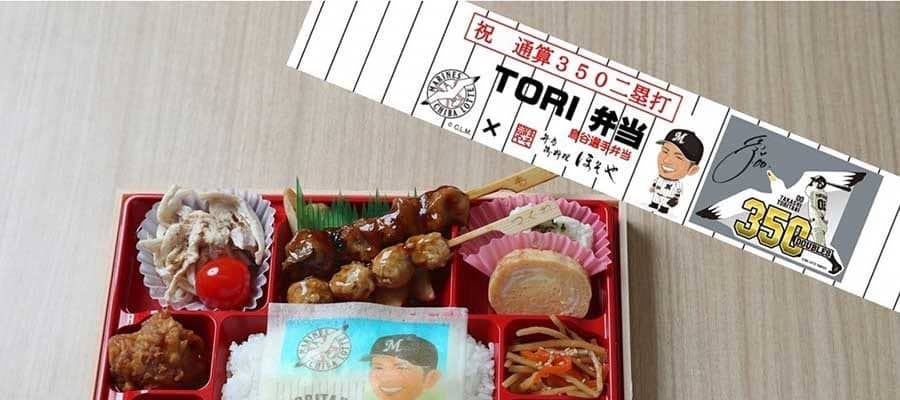プロ野球・ロッテは、鳥谷敬内野手の史上46人目となる通算350二塁打達成を記念し、今日30日の楽天戦(ZOZOマリン)からコラボグルメ「TORI弁当」を記念パッケージで、焼き鳥を1本増量して数量限定販売すると発表した。