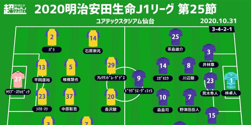 【明治安田生命J1リーグ第25節】 2020年10月31日(土) 13:00キックオフ ベガルタ仙台(18位/13pt)…