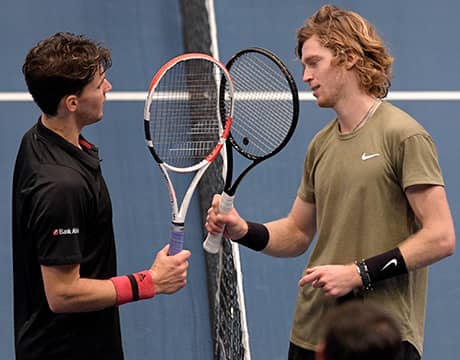男子テニスのエルステ・バンク・オープン(オーストリア/ウィーン、室内ハード、ATP500)は30日、シングルス準々決勝が行われ、第5シードのA・ルブレフ(ロシア)が第2シードのD・ティーム(オーストリア)を7-6 (7-5), 6-2のストレートで下し、ベスト4進出を果たした。