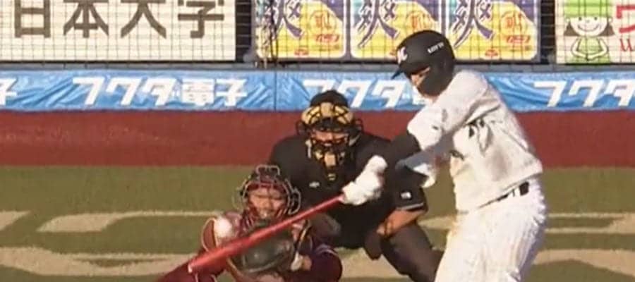 6回のロッテの攻撃中に西日で試合が中断、その直後に菅野の逆転打が飛び出す