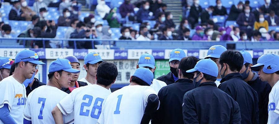 ドラフト1位右腕を崩せなかった。東大はDeNAから1位指名を受けた153キロ右腕・入江大生(4年)から毎回のように走者を出し、4回まではすべて得点圏に進めた。しかし、ピンチでギアを上げる剛腕に対し、あと一本が出ない。6回まで登板した入江に対しては4安打を放ちながら無得点。打線は9回に3点を返したが、投手陣の大量失点が響き、リーグ戦の連敗は「55」に伸びた。