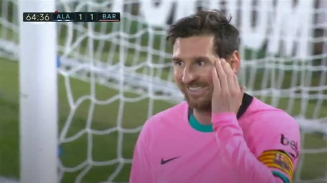 31日のラ・リーガ第8節アラベス戦での最も印象的なシーンの一つの主役はメッシだった。試合前半39分、アラベスのDFシモ・ナバーロがデ・ヨングにファウルとみられるプレーをした直後にそれは起きた。