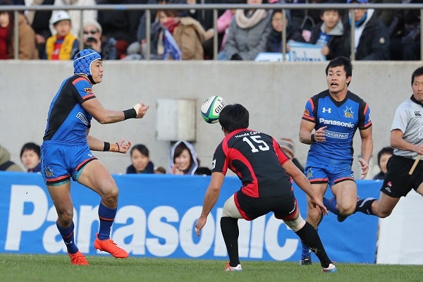 攻防の境界線を自陣10メートル線付近まで押し戻すと、来日4日目で先発のFLデービッド・ポーコックが向こうのFB半井優太を一撃で倒す。刹那、近くのNO8ホラニ龍コリニアシが絡む。