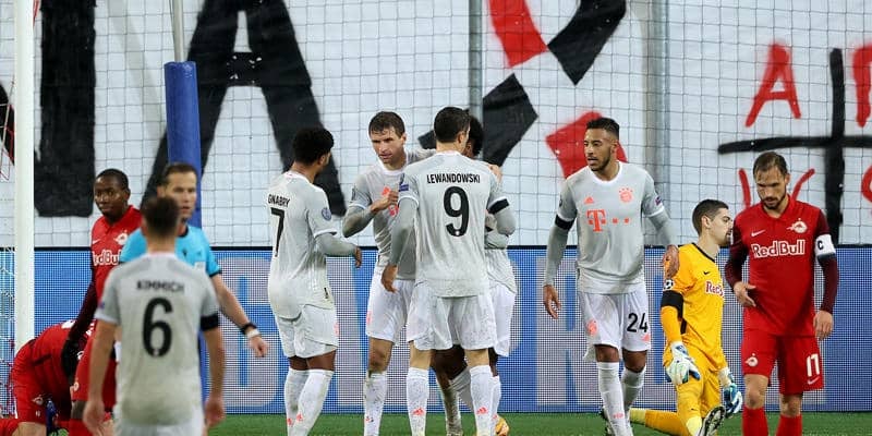 レヴァンドフスキを最前線に、2列目に右からニャブリ、ミュラー、コマンと並べる[4-2-3-1]で臨んだバイエルンは立ち上がり、ザルツブルクの勢いに押されると4分に失点する。シュートのルーズボールをボックス左のベリシャに拾われ、シュートを決められた。