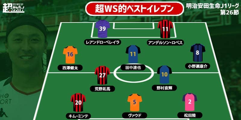 明治安田生命J1リーグ第26節の6試合が3日に開催された。超WS編集部が各試合から印象に残った選手を選りすぐり、ベストイ…