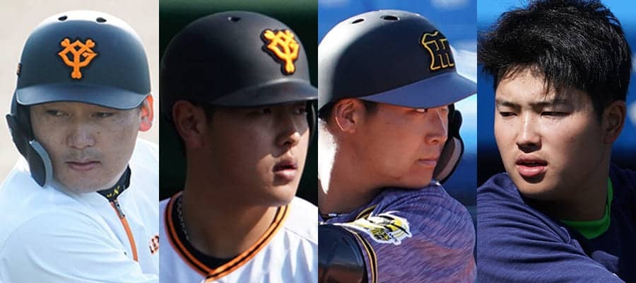 巨人・丸佳浩と岡本和真、阪神・大山悠輔、ヤクルト・村上宗隆(左から)【写真:荒川祐史】