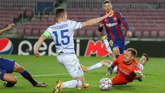 枠内シュートを7本放たれるも、復帰したテア・シュテーゲンは何度もチームを救った。35分のブヤルスキーのヘディング、45分のツィガンコフとの1対1、55分のスプリアハとの1対1、得点を奪われた75分のヴェルビッチのシュート。どれも指先や足が残っており、紙一重だった。