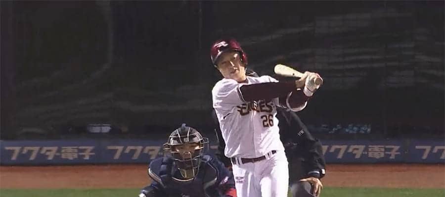大きな拍手に迎えられて初回の打席に入った渡辺直は、西武の先発・浜屋の初球に反応して右飛に。3回2死の第2打席では、内角の直球をうまく左翼線に運んで二塁打。この日チーム初安打となり、続く小深田の左前適時打で三塁を蹴ると、ヘッドスライディングで先制の生還を果たした。その後、鈴木にも適時二塁打が飛び出し、この回2点を先制した。