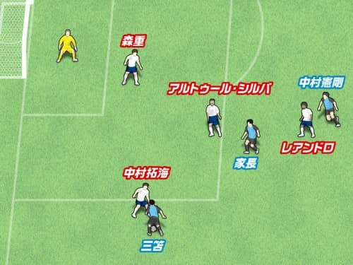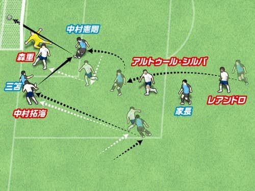 アルトゥール・シルバの背後を回って向かった先は、中村拓海の裏のスペースだった。遠回りでも背後を回ることで、ノーマークのまま危険なスペースへと進入した。