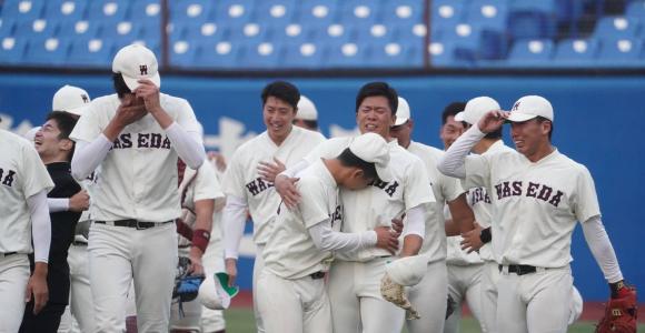 ダイヤモンドを一周しながら蛭間本人も、三塁コーチャーの学生コーチ・杉浦啓斗(4年)も泣いた。ベンチ前に飛び出し、狂喜乱舞した選手たちの目にも涙。その流れを引き寄せたのが、次打者にいたエースで主将の早川隆久(4年)だった。