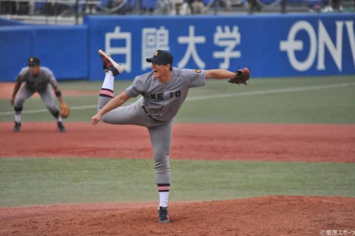 昨日黒星を喫し、優勝のためには勝利しか残されていない慶大。先発を任されたのは、森田晃介(商3・慶應)だ。初回から1死一、二塁のピンチを招くも後続を封じ、この場面を切り抜ける。しかし3回、得点圏に走者を背負うと、3番・瀧澤(スポ4・山梨学院)にタイムリーを許し先制点を与えてしまう。