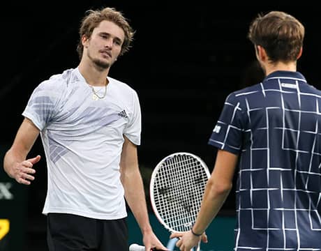 決勝戦、ズベレフは4本のサービスエースを決めるなどファーストサービスが入ったときに83パーセントの高い確率でポイントを獲得。メドヴェデフに1度もブレークチャンスを与えることなく第1セットを先取する。