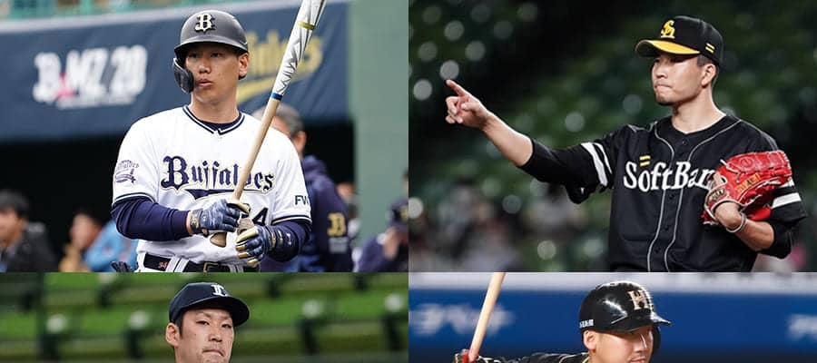 オリックス・ 吉田正尚、ソフトバンク・千賀滉大、日本ハム・中田翔、西武・ 増田達至(左上から時計回り)【写真:荒川祐史】