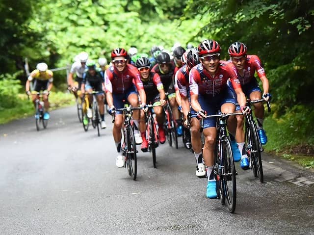 前日の優勝者・山本元喜がリーダーの証であるルビーレッドジャージを着てスタートラインにつく