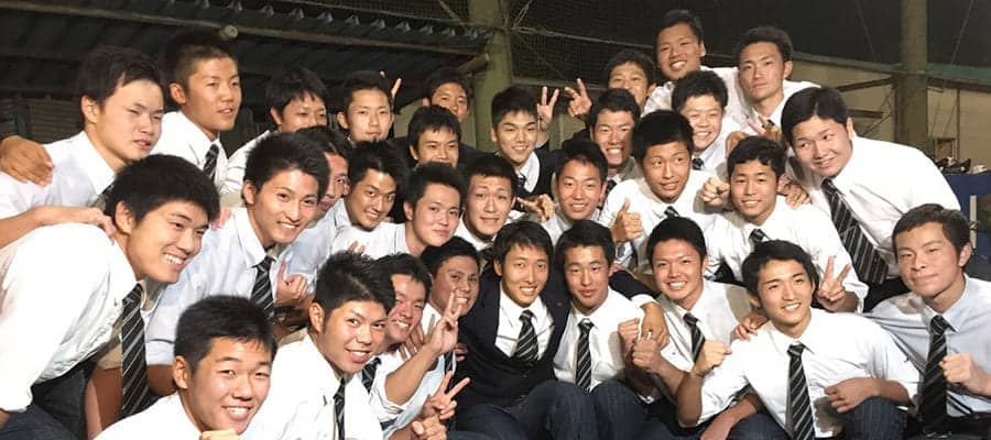 野球部のみんなが祝福してくれたことも間違いなく有り難かったのですが、それ以上に感動する出来事が私を待ち受けていました。ドラフト会議で指名を受けた次の日、私はいつもと同じ時刻の電車に乗って登校し教室に向かいました。ドアを開けると、クラスの全員が出迎えてくれて私のことを祝福してくれました。また、黒板にはクラスメート全員からのメッセージで埋め尽くされており、私のためにここまで準備してくれたことにとても感動し、良い仲間に恵まれたことに心の底から感謝しました。