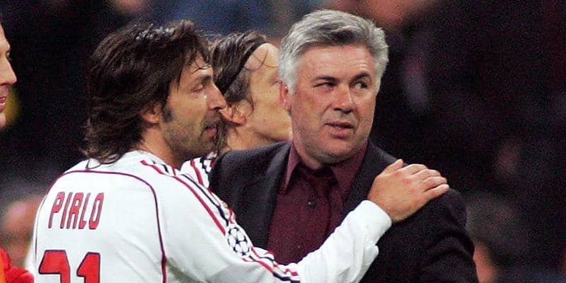 アンチェロッティ監督とピルロ監督は、ミラン時代(2001~09)に監督と選手の関係にあり、アンチェロッティ監督はピルロ監督のレジスタとしての才能を開花させた恩師。