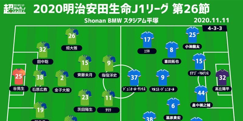 【明治安田生命J1リーグ第26節】 2020年11月11日(水) 19:30キックオフ 湘南ベルマーレ(16位/17pt…