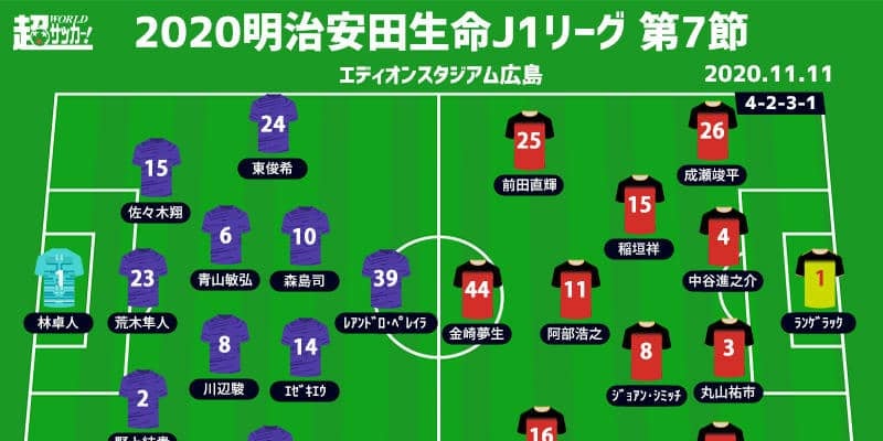 【明治安田生命J1リーグ第7節】 2020年11月11日(水) 19:00キックオフ サンフレッチェ広島(10位/39p…