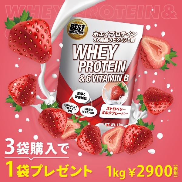 「BEST NUTRITION LAB ホエイプロテイン&6種類のビタミンB群」は、1kg(約50回分)で、2900円(税別)。フィットネスショップ各店や、ECサイトにて販売中です。なお、今なら3袋購入で1袋プレゼントされるキャンペーンも実施中です。