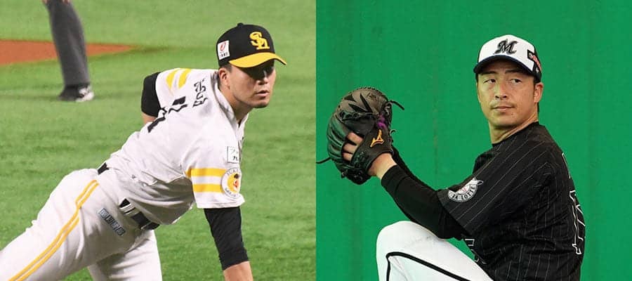 ソフトバンク・千賀滉大(左)とロッテ・美馬学【写真:藤浦一都、荒川祐史】