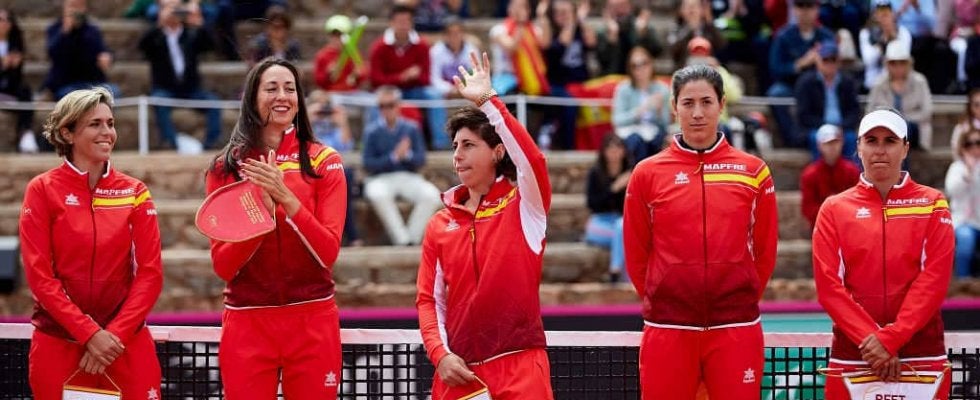 ※写真は2018年「フェドカップ」でのスペインチームで手を挙げているスアレス ナバロ