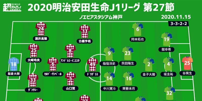 【明治安田生命J1リーグ第27節】 2020年11月15日(日) 14:00キックオフ ヴィッセル神戸(11位/36pt…