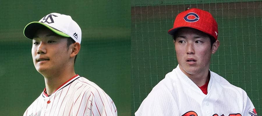 ヤクルト・奥川恭伸(左)と広島・森下暢仁【写真:荒川祐史】