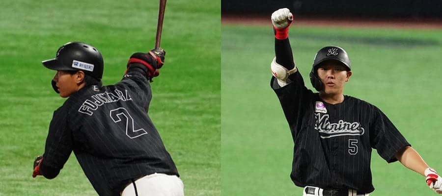 ロッテ・藤原恭大(左)と安田尚憲【写真:荒川祐史】