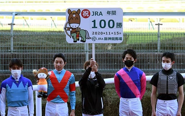 今年の年間100勝達成は、C.ルメール騎手・川田将雅騎手・福永祐一騎手・松山弘平騎手に続く5人目。