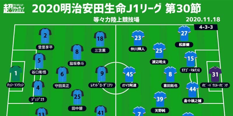 【明治安田生命J1リーグ第30節】 2020年11月18日(水) 19:00キックオフ 川崎フロンターレ(1位/69pt…