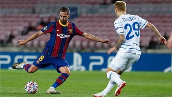 加入前にコロナウイルスの検査で陽性反応を示し、合流が遅れたピャニッチ。ロナルド・クーマン監督のシステムではブスケツとデ・ヨングがのダブルピボーテがファーストチョイスだ。
