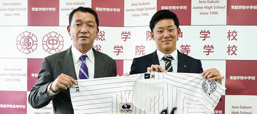 報告会後はグラウンドで後輩たちを激励。これまでも多くのプロ野球選手を輩出してきた同校から初めてのドラフト1位指名となったが、「プロ1年目から1軍に定着し、チームに貢献できるように頑張りたい」と気持ちを新たにした。母校の期待を背負い、今度はプロとしての「責任」を胸に大きな舞台へ飛び込んでいく。(楢崎豊 / Yutaka Narasaki)