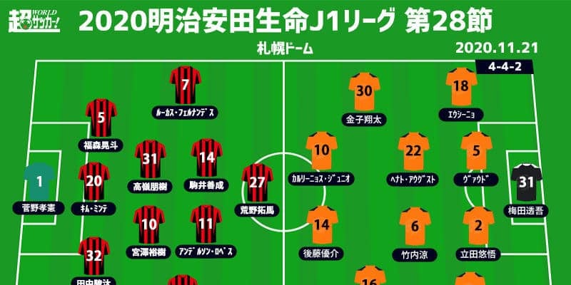 【明治安田生命J1リーグ第28節】 2020年11月21日(土) 14:00キックオフ 北海道コンサドーレ札幌(13位/…
