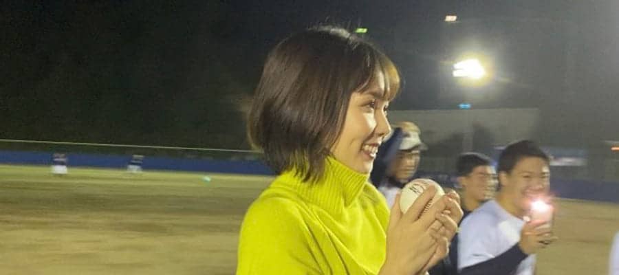 ヒロド歩美アナ、人生初“始球式”は圧巻ノーバウンド投球 球児も驚愕する一球が話題 | 野球