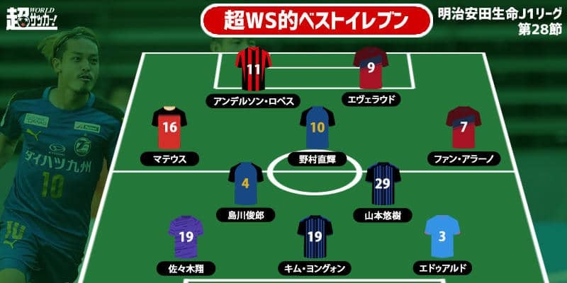 【超WS選定週間ベストイレブン/J1第28節】優勝阻止した立役者を選出!最多は鹿島の3選手 | サッカー