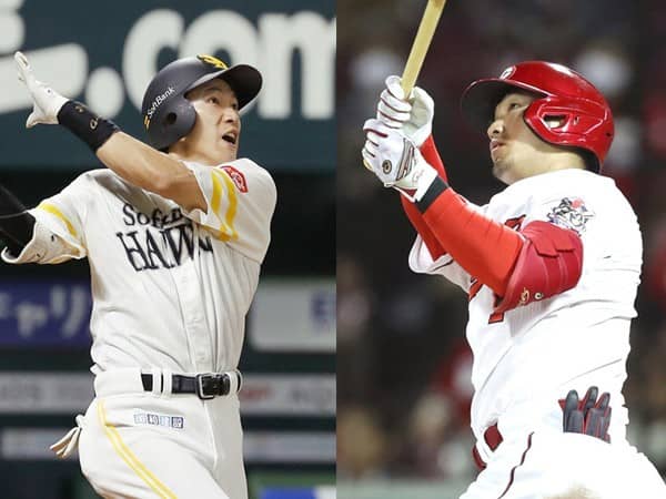 ソフトバンクの柳田悠岐(左)と広島の鈴木誠也(右)