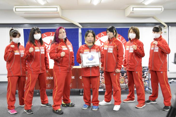 続いて11.29仙女 後楽園ホールで行われる「仙女 vs マーベラス 団体対抗 7vs7 勝ち抜き戦」の会見のため、両団体全選手が入場。