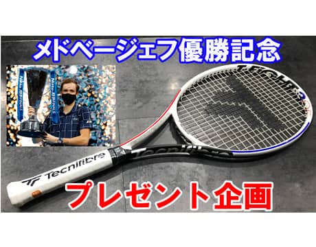 男子テニスの最終戦 Nitto ATPファイナルズ(イギリス/ロンドン、室内ハード)で初優勝を果たしたD・メドベージェフ(ロシア)を記念して、メドベージェフが使用するラケット【テクニファイバー TFight 305 RS】を抽選で1名様にプレゼント。