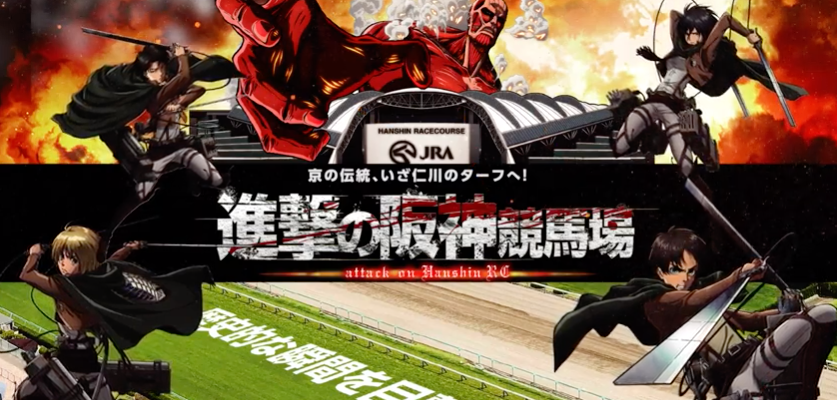 JRA阪神競馬場は、12月より新シリーズのTVアニメ放送を予定している「進撃の巨人」とコラボレーションした「進撃の阪神競馬場」プロジェクトを企画した。