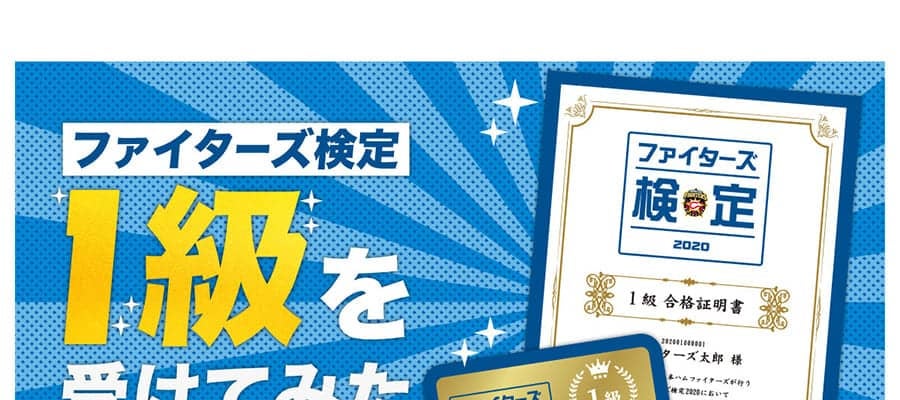 「ファイターズ検定2020」は、日本ハムに関する知識を問う公式の検定試験。最近興味を持ち始めたファン向けの3級から、これまでの歴史と記録などの難問が揃う1級までの3つのレベルがあり、ライトからディープまで幅広い層が楽しめます。
